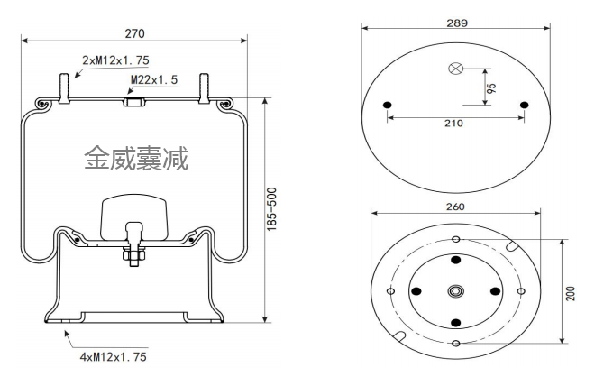 JW6339拖挂车空气弹簧气囊 Trailer air spring airbag 1V6339 1V6339Y00 W01-M58-6339 W01-358-6339