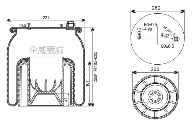 JW8621奔驰卡车空气弹簧气囊 140MM Air spring airbag of Benz Truck 9613205021 1V8621 9613205021S SP555021-K